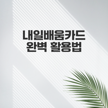 내일배움카드는 직업능력 향상과 교육 비용 지원을 통해 다가올 취업 기회를 준비하는 데 큰 역할을 합니다. 올바른 신청 방법을 통해 여러 가지 혜택을 누려보시기 바랍니다.