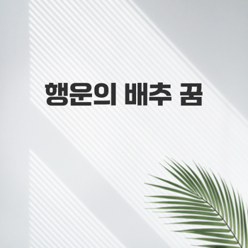 밤에 꿈에서 배추를 보았다면, 이 꿈이 로또와 연관되어 있다는 생각을 해본 적이 있으신가요? 배추 꿈은 재물운과 잇닿아 있다는 점에서 흥미로운 주제입니다. 이번 섹션에서 배추 꿈과 로또 번호의 연관성, 그리고 꿈 속 배추의 행운에 대해 자세히 알아보겠습니다.