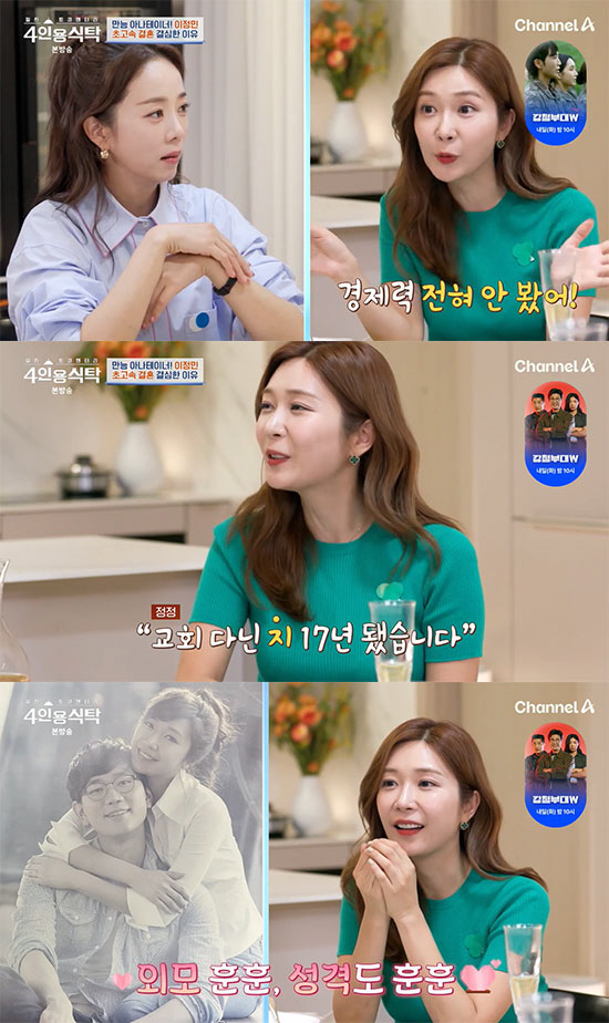 이번 ‘4인용식탁’에서 방송인 이정민이 의사 남편과의 사랑 이야기와 기적 같은 늦둥이 출산 스토리를 공개했어요. 경제력 대신 신앙과 비흡연 조건을 우선으로 한 그녀가 피부과 진료 중 소개로 남편을 만나 결혼까지 단 6개월이 걸렸다고 해요. 남편은 이정민을 처음 보고 "천사가 들어오는 줄 알았다"고 한 고백까지! 단순한 사랑 이야기를 넘어선, 진정성과 운명의 만남이라는 게 느껴졌어요.