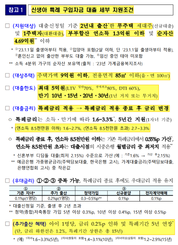 - 소득 및 자산 조건: 부부합산 연소득 1.3억 이하, 순자산 4.69억 이하