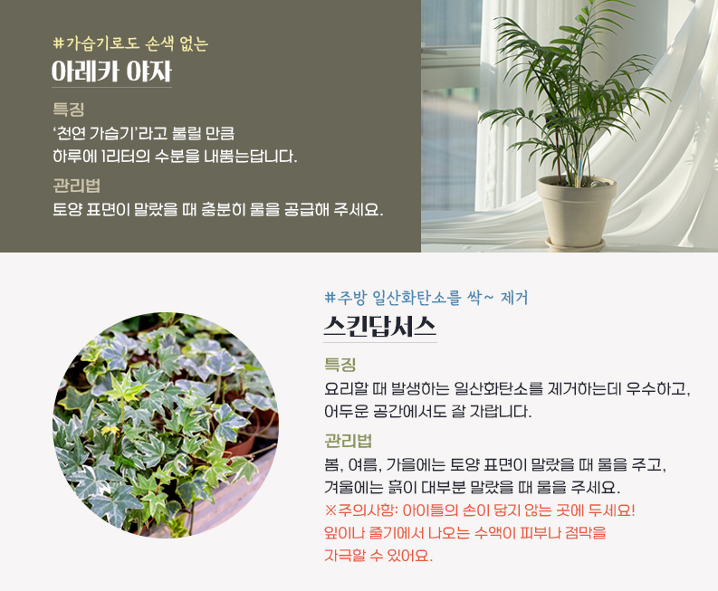 - 주의사항: 잎이나 줄기의 수액이 아이들에게 자극이 될 수 있으므로 손이 닿지 않는 곳에 배치하세요.