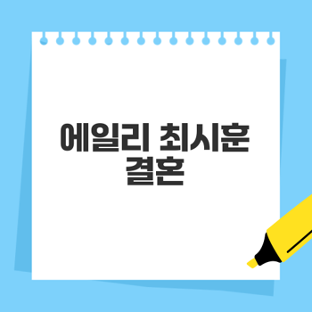 최근 에일리는 연애인 최시훈과의 결혼 소식을 발표했습니다. 많은 팬들은 이 결혼이 에일리의 음악 활동과 커리어에 긍정적인 영향을 줄 것이라고 기대하고 있습니다. 결혼은 종종 아티스트에게 정서적 안정감과 영감을 주기 때문입니다.