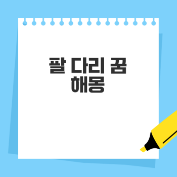 꿈은 단순한 환상이 아니라, 우리 내면의 목소리로서 중요한 역할을 합니다. 팔 다리 꿈은 각기 다른 의미를 갖고 있으며, 우리는 이를 통해 많은 것을 배울 수 있습니다. 예를 들어, "팔에 붕대를 감고 있는 꿈"은 부하나 협력자, 권력 등이 쇠퇴할 징조를 나타냅니다. 반대로, "걸음을 빨리 걷는 꿈"은 운수가 열리고 일이 잘될 것이라는 긍정적인 신호입니다. 다음 표에서 다양한 팔 다리 꿈의 해몽을 확인해 봅시다: