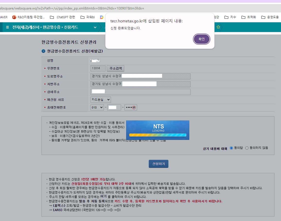 현금영수증 카드 신청을 마치며