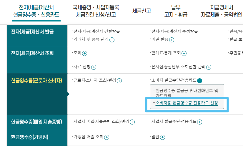 온라인으로 현금영수증 카드 신청하기
